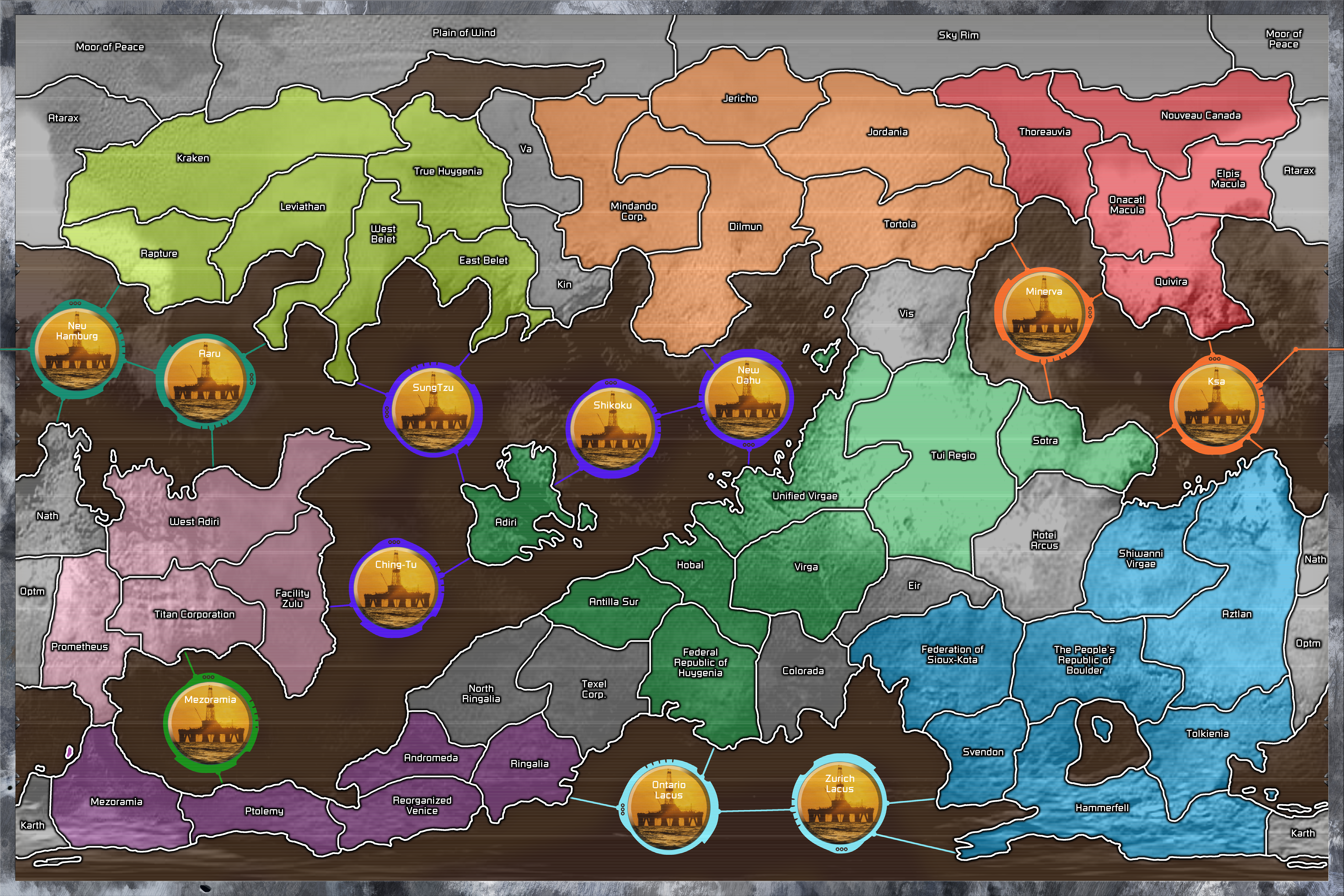 Nuclear command cards affecting lunar territories allow a player to choose BOTH Water AND/OR Lunar territories (since all Water is on Rhea). This plays in a similar fashion to the above but players may draw from either or both decks in a nuclear attack.